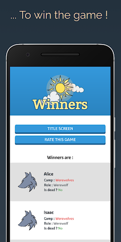 the Witch, the Seer, the Cupid, and many more ! Be sure to use their abilities very well in order to triumph over the opposing side.
