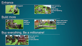 Put engines and wagons on the built track and just push them with your finger, and they start to move. They will travel the prepared track and stop automatically at the placed industrial buildings and stations. The trains will deliver automatically food, steel and oil to the city stations, and if your cities are big enough you can transport passengers between them.