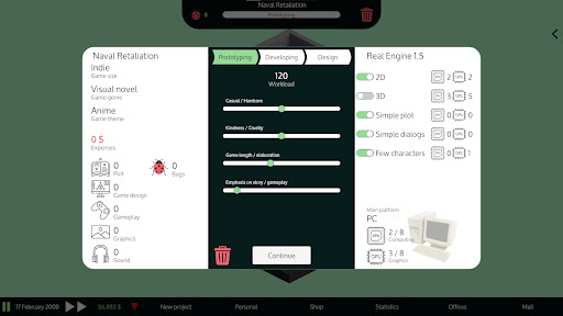 You are an aspiring game developer in early 2000. Hire workers, buy offices, create the games of your dreams and try to make money from them. Climb as high as possible, from a small company to a huge corporation.