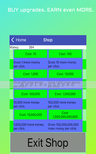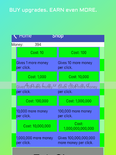 2. Use the money to buy ‘click’ upgrades in the shop. These can be used to get even more money per click!