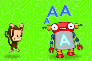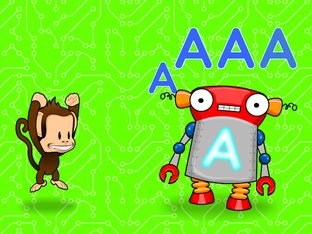 * Alphabots. Power up dancing robots with letter shaped batteries.