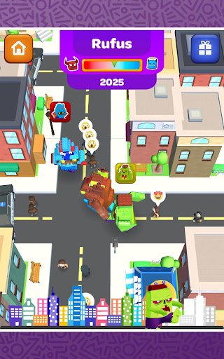 As you play with them and feed them, they can evolve into adorable or terrifying monsters. Unlock new 3D stickers to evolve your new characters. Visit the city in search of food and objects for your pets, discover if citizens adore or fear them and collect points.
