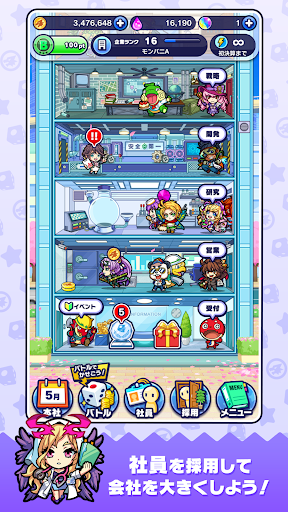 Famous characters from the popular game Monster Strike have entered the modern world to pursue a career in the Dream Company. Choose your favorite characters, each with their unique personality, and work together towards achieving your dream company.