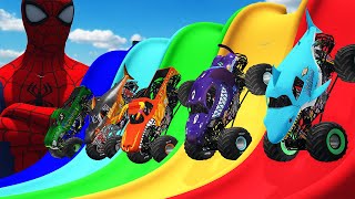 5 MONSTER TRUCK VS COLOR WATER SLIDE STORYReal Simulator