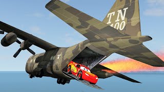 LIGHTNING MCQUEEN AND 4 MONSTER TRUCK VS PLANE CRASH STORYReal Simulator