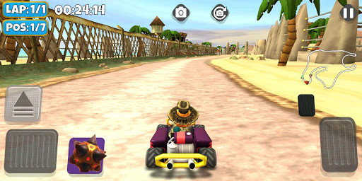 Your favorite feathered racer is back, bringing both old and new friends with him in this action-packed Arcade game as you race your way through 8 exhilarating 3D worlds with explosive excitement around every corner. Collect weapons as you race around the tracks and strategically fire them to drive your opponents off the road. Moorhuhn Kart is a great time for all ages!