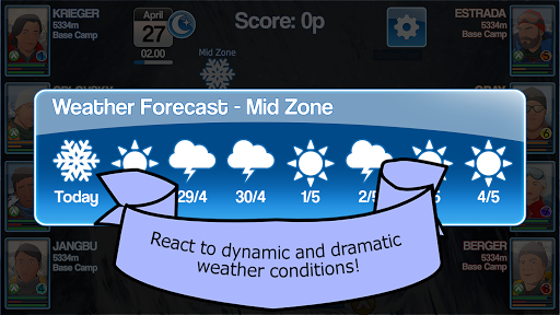 Be prepared to encounter erratic weather patterns on your ascent, requiring your quick reaction to adapt to unfamiliar terrain and dynamic situations. Surviving the “death zone” will become your top priority. The higher you ascend, the greater the rewards, but make sure that your teammates are well-rested and in top health. Failure to do so will cause severe penalties for injuries.