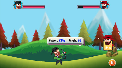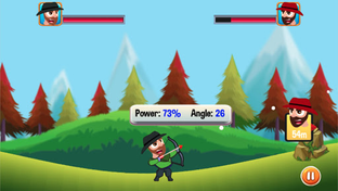 Mr Bow Archer is a turn-based game. Game controller assign each side a turn to play. When it is your turn, you need to check out the distance to your opponent, then select the appropriate power/angle setting to shoot the arrow. Each successful hit decreases enemy health a little. When its AI's turn, he will calculate the shoot/angle power and will try to hit you based on the difficulty settings of the game. We have 4 difficulty levels: