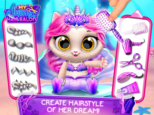 Experiment with all the hair salon tools and create the most mind-blowing hairstyles for the animals! Brush and move hair freely in any direction. Dye it in any color of the rainbow!