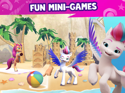 Explore new terrain in Maretime Bay as one of the Mane 5 - Sunny, Izzy, Pipp, Zipp & Hitch and defend magic & friendship in My Little Pony World!
