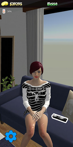 She can go to the kitchen to eat, to the bathroom, to the toilet, to the sofa, to bed and to play sports. There are games hidden in some objects. Try clicking on the remote control on the sofa.