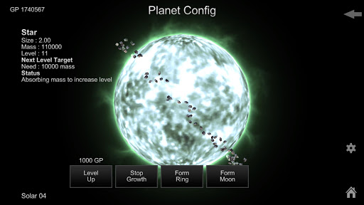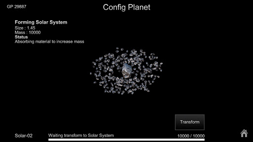 Roaming sandbox universe and discover wandering planets or solars, your solar system can earn GP and mass. GP is important to build your system. It is very easy to earn, simply roaming the universe and near other planets you will receive a GP.