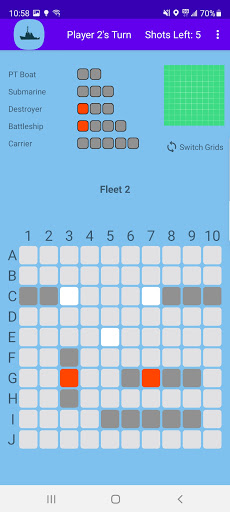 For those not familiar with the rules, both sides place their ships on two grids, then take turns firing on the other player's grid in a race to sink the opponent's fleet.