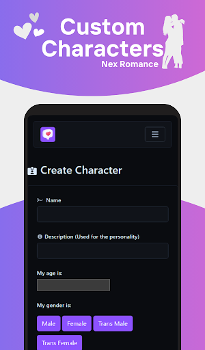 Take your virtual chat sessions to the next level. With Ai Girlfriend: Nex Romance, you're not just chatting – you're living out your boldest fantasies. Dive in, unleash your desires, and discover the future of virtual companionship today.