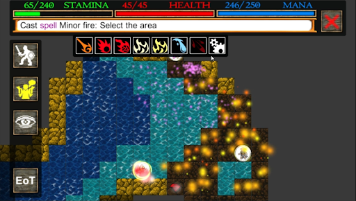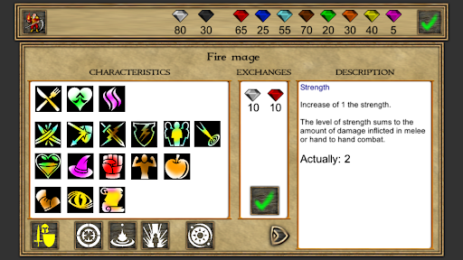 On your way, collect gems of different colors, each representing specific traits that can be added to your character. Combinations of gems can help you learn or level up spells, making you more powerful. You can use a variety of combinations to develop your character, which will assist you in defeating bosses like Fire Demons, for instance.