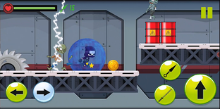Move with ninja skill through chaotic hostile levels avoiding thunder hits and explosions. Evade traps with timing and precision. Collect various power-ups (shield. thunder, knives, coins, health).
