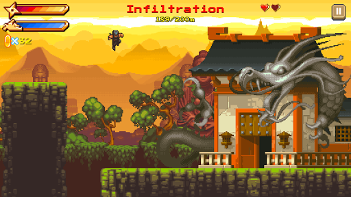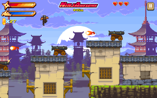 NinjAwesome is an exceptional gaming experience that lets you embody the role of a ninja, and hone your skills by nimbly gliding through dangerous perils, grabbing bouncing coins, and swiftly proceeding through the pixelated plants. You can slice your foes in the blink of an eye and hit them with shuriken as you bound through the game! Your destiny relies on your success in the demanding tests of a ninja, including Assassination, Infiltration, Sabotage, Espionage, and Wandering.