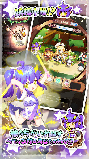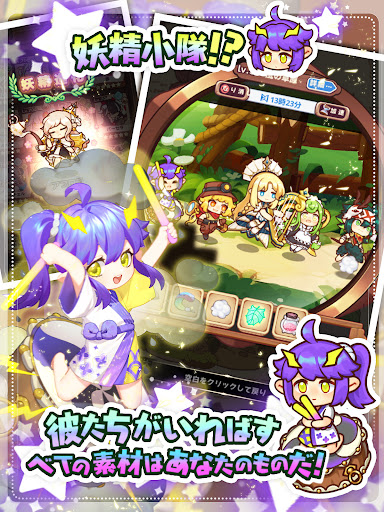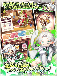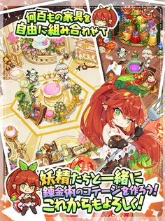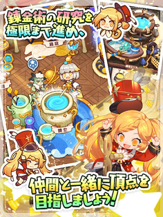 縦画面で表示される錬金工房は、指先ひとつで操作でき、妖精の派遣やアイテムの出荷などは手順が簡単で、片手でも簡単にプレイできます。更に、素材の採取、植物の栽培、錬金物の販売などは自動進行されます。