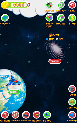 The difficulty levels range from very easy to extremely hard. Each stage has multiple levels and solving all of them will reveal the picture hiding behind the puzzle pieces. This will give you a fun adventure-type experience in a challenging and colorful puzzle game.