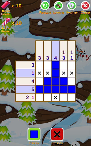 Enjoy a colorful interface with pleasing background music while playing this Nonogram Logic Number Puzzle game. We have designed this game in such a way that every second of it would be a pleasing experience be it with the gameplay or with the interface.