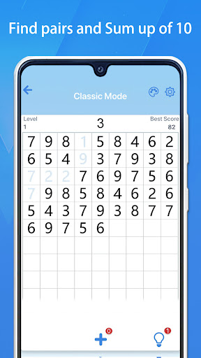 Number Match - 10 & Pairs is a classic game that many puzzle game lovers have played. The game is called Make Ten, Take Ten, Digits, Numbers, Sunflower seeds, Seeds, Or Column. Many people have played Number Match since childhood with pens and paper! In the 21st century, you only need to pick up your mobile device and experience this number-matching puzzle game anytime, anywhere.