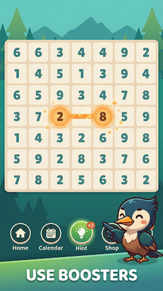 When there is no matching number on the board, the props at the bottom of the screen can provide you with a helping hand! Players can choose to copy the remaining numbers on the board and add them to the game. Or use Bomb, Swap, Hint or Undo to change the situation!
