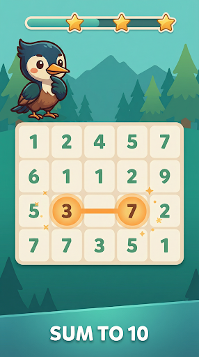 🏆Two adjacent numbers that add up to 10 can be eliminated by sliding or dragging them with their fingers. Enter【 3+7=10】,【 1+9=10】. In addition, two adjacent identical numbers can also be matched and eliminated【1=1】. The numbers that meet the above two conditions can be eliminated in the air when there is no other number blocking the linear distance between each other. At the same time, on the premise that the above two conditions are met, the two numbers are respectively in the last grid of the previous row and the first grid of the next row in the two rows of grids (from left to right), which can also be eliminated. It's like the order of reading from left to right and top to bottom!Eliminate all the numbers on the board to win this puzzle game!