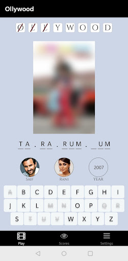 You can change the preferences to search for Bollywood or Hollywood movies in the Ollywood Movie Game.