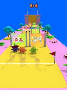 They have to run, climb, fly, and swim to reach the finish line first. To give themselves an edge, the characters can use different equipment, gadgets, and items, like surfboards, wings, and boots, to go faster.