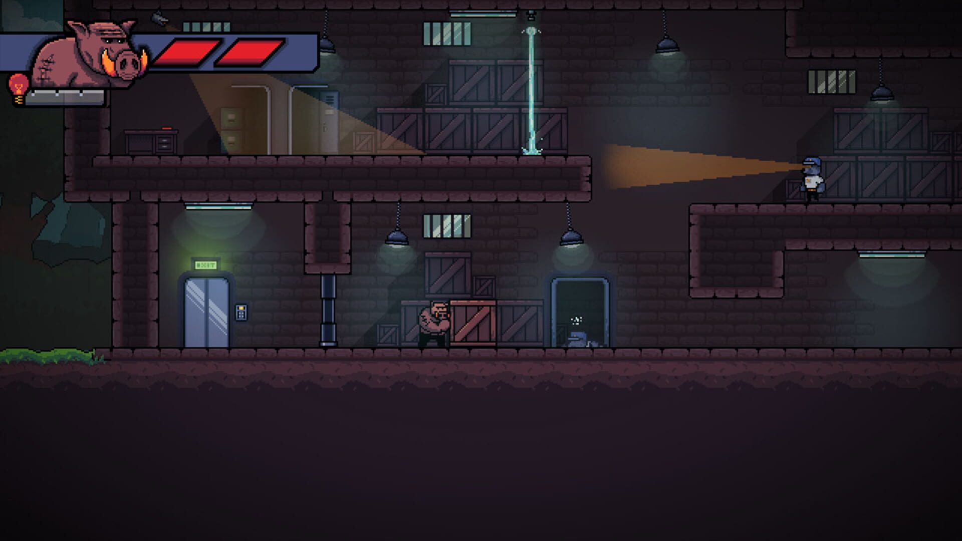 Robbers botched bank heist; escape prison by evading guards, traps, and finding key cards across 60 levels.
