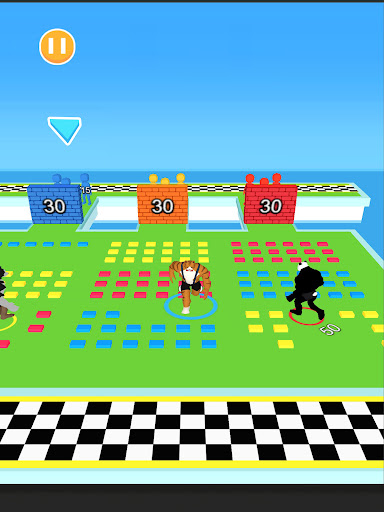 This is a combination of human and animal games, each athlete needs to collect the corresponding color squares on the field, and reach the corresponding number to clear the obstacles on their own track.