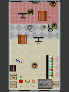 Earn special ammo and power-ups by saving the staff and completing stages. Three cafeterias to save, 120 stages in total, and 6 dangerous boss levels.