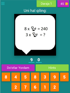 Matematik Sınavı tam size göre. Ekranda cevaplamanız gereken bir soru olacak. Sorular toplama, çıkarma, bölme, çarpma, geometri ve matematiksel bulmacaları içerir. Kolaydan zor seviyelere kadar değişen matematiksel bulmacalar var.