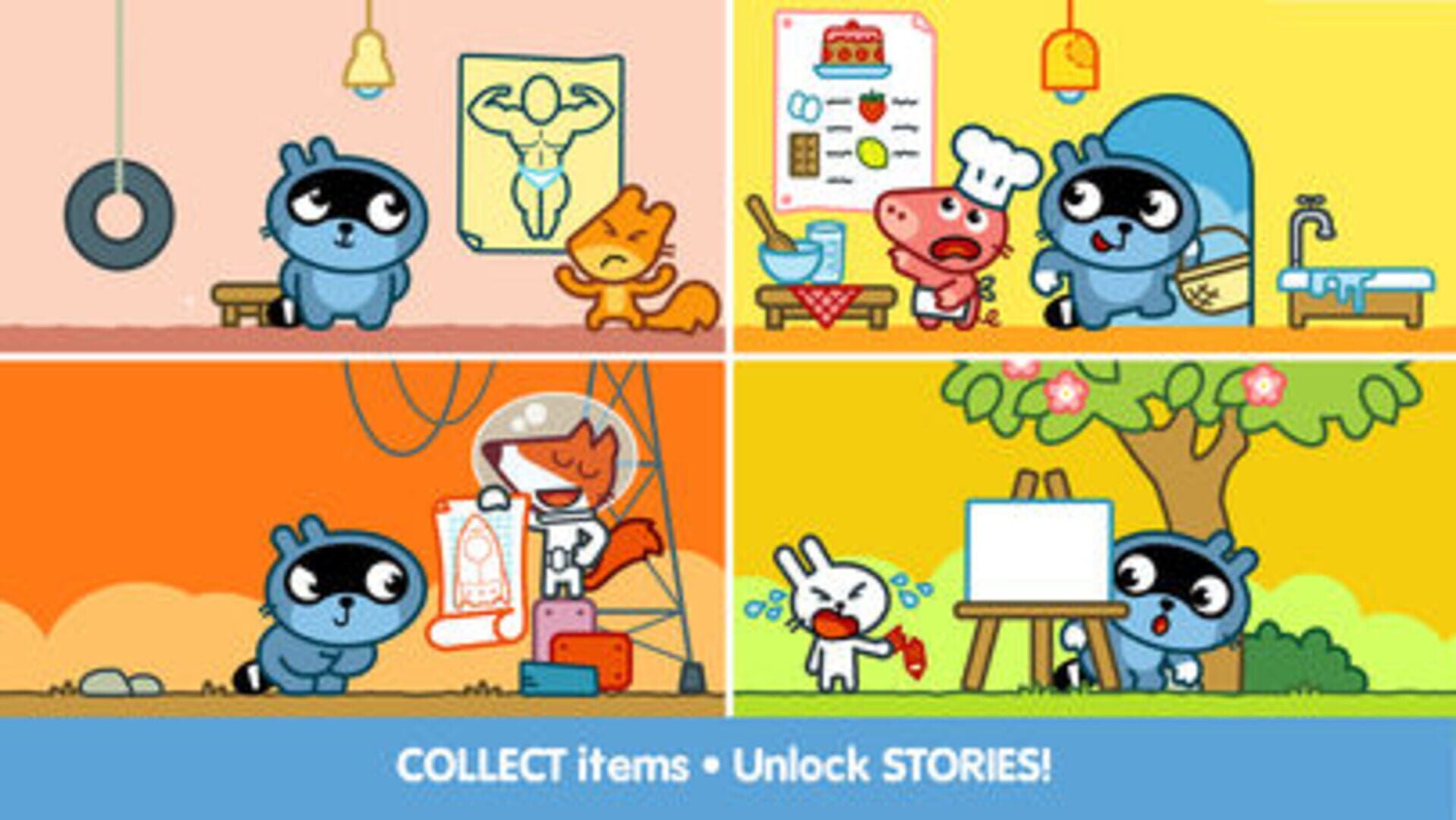 Pango Blocks is a game that will stimulate your mind and brighten your day! Exercise your mental prowess and construct a path for Pango by choosing logic blocks. If Pango crosses the screen without stumbling, he'll get an item and gift it to a friend. In this game, you'll need to assist Pango in obtaining eight ingredients for Pig's kitchen, eight tools for Fox's rocket, sports gear for Squirrel, and drawing supplies for Rabbit.