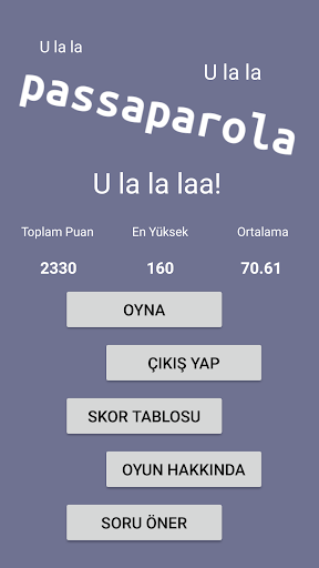 Efsane Passaparola yarışmasının mobil versiyonu olan bu oyun ile birbirinden zor sorularla karşılaşacak, zamana karşı yarışacak ve kelime haznenizi genişleteceksiniz.