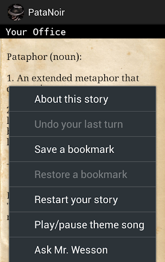 Get hooked on the unique and immersive gameplay of PataNoir - the game that revolutionizes the world of text-based gaming and lets you uncover mysteries like no other game before it.
