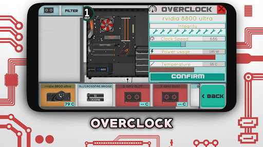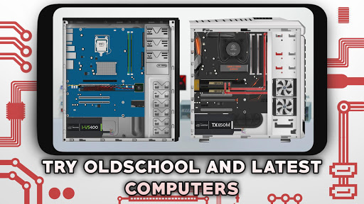 In this PC building simulator you have to earn money by winning different benchmark competitions, completing orders from people to assemble them a PC and achieving even greater results by overclocking your parts. In this game you need to deal with incompatibility, overheating, insufficient power and other issues. You can buy a bigger variety of parts from e-shop but it will be more expensive to buy here than in your local shop or you can wait until those parts will arrive to your local shop. In this game there are over 500+ parts that are unlocked by progressing through a calendar. In PC Architect’s alternate universe PC building scene is taken over by Kintel, Rvidia, RMD and Ai.