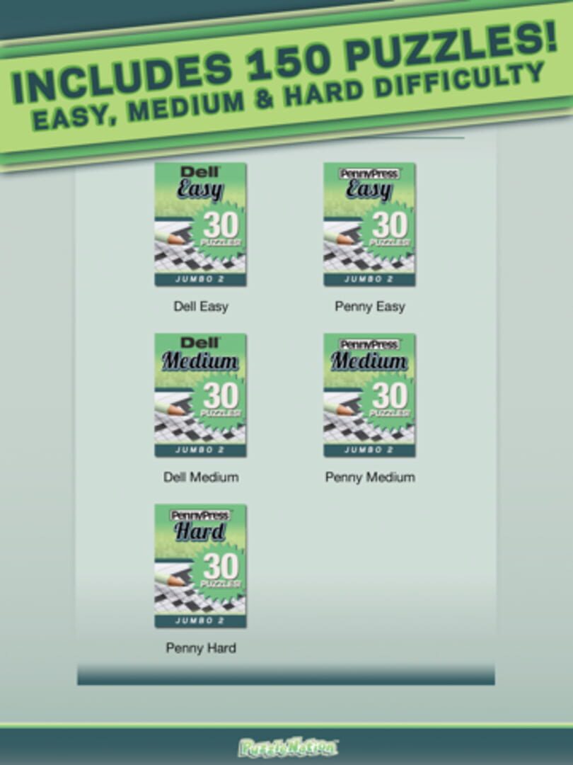 Penny Dell Crosswords Jumbo 2 is the ultimate crosswords app, featuring the best puzzles from Dell Magazines and Penny Press, the leading crossword puzzle magazine publisher. Enjoy hours of engaging and challenging gameplay with Easy, Medium & Hard puzzles, all of which come with an extra set of alternate clues for a unique solving experience, available on your iPhone, iPad or iPod touch.