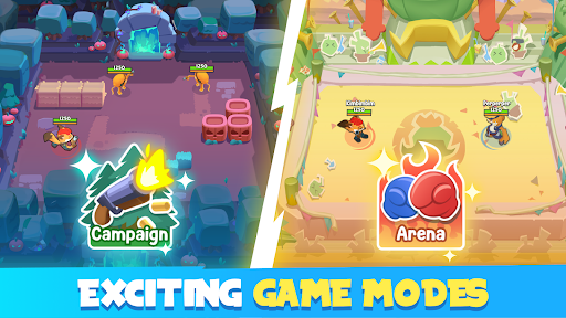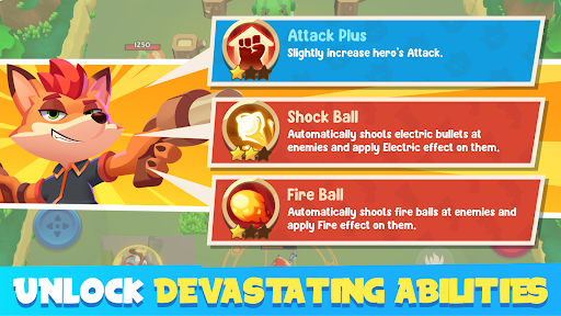 Win battles to unlock heroes with upgradeable skills and weapons.
