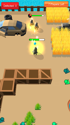 Game with a unique twist and fast-paced, action packed space battle Royale arena! Use various strategies from facing your enemies head on to sneaking behind and hide in the barrier(yellow dome) to avoid detection then shoot them at generator (Red orb) behind them to make critical damage. Break the treasure chest and collect all kind of item to get stronger and beat your enemies up.