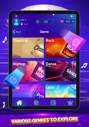 Blends piano and EDM music perfectly, you can perform piano music by simply tapping 3D piano tiles. With ease and fun, melody and rhythm of piano songs flow freely along your finger touch.