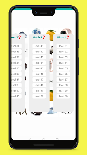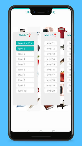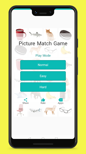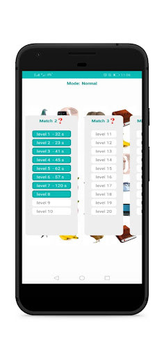 picture match memory game has three modes, each mode contains 60 different levels. every mode has different styles of matching images which are: match 2 picture, match 3 pictures, mirror 2 pictures, mirror 3 picture, match 4 picture, and mirror 4.
