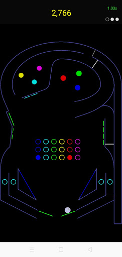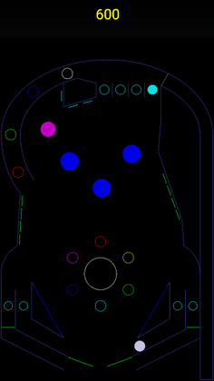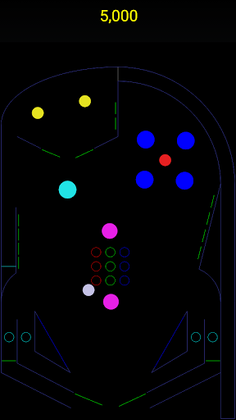 A drain is situated at the bottom, protected by player-controlled flippers. A game ends after all the balls fall into the drain.