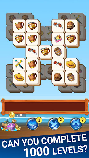 Play, tap, match 3 tiles and solve the puzzle with pirate mahjong match 3 tile in one mobile game.