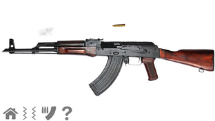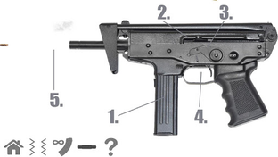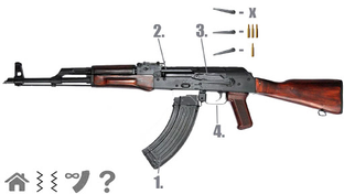 This simple app simulates a pistol, a machine gun, a shotgun and a submachine gun.