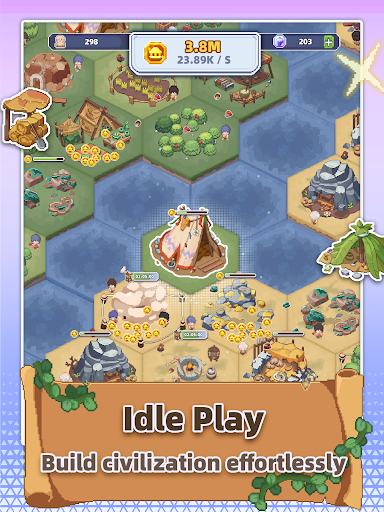 Step into the world of ‘Pixel Civilization’, an idle and casual simulation strategy game that leads you into an exhilarating adventure through human history. With a peaceful setting focused on growth, expansion, and progress, you can establish the most innovative and flourishing civilization.