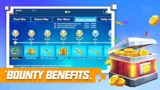 Pixel World gameplay Players can play as a soldier and complete various missions.