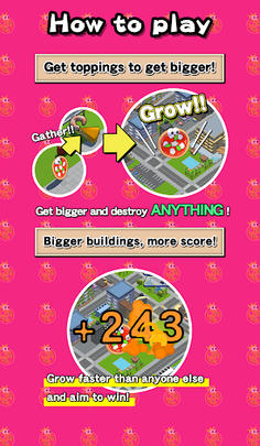 Smash buildings and pick up toppings to become the Pizza King in this rule-free battle featuring over 60 types of pizza.