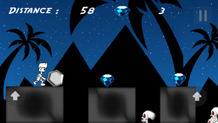 Jogo de plataforma fazer o maximo de pontos sem ser pego pelas caveiras satitantes.