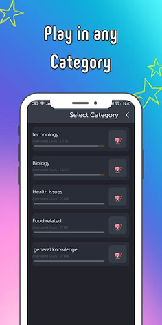 - best categories of Quiz and Earn like general knowledge, food quiz, health quiz, biology quiz and technology quiz.